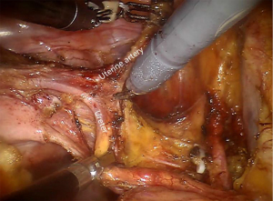 The ureter is an especially important structure in radical surgery. Its separation and protection are the key to extensive total hysterectomy (Figure 6).