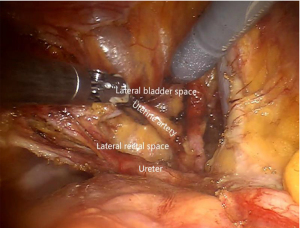 At the beginning of the surgical procedure, the pelvis was carefully evaluated. Separating pelvic conglutination and restoring normal anatomical relationships was helpful to ensure the carrying out of the operation. In the process of separation, the interstitial tissues need to be identified to reduce bleeding.